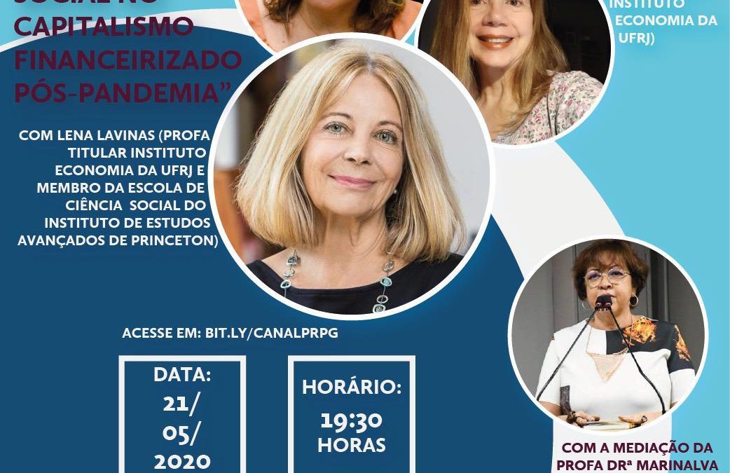 Na próxima quinta-feira (21), estarei ao lado das professoras Lena Lavinas (UFRJ) e Denise Lobato (UFRJ), debatendo sobre os “Desafios dos Sistemas de Proteção Social no Capitalismo Financeirizado Pós-Pandemia”. O encontro virtual é uma realização do Programa de Pós-graduação em Serviço Social da UFPB e será transmitido pelo YouTube da Pró-Reitoria de Pós-graduação da UFPB, através do canal de acesso: https://bit.ly/canalprpg .